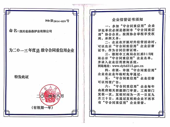 2、廣漢市守合同重信用企業(yè)、企業(yè)信用等級(jí)3A單位等榮譽(yù)資質(zhì)